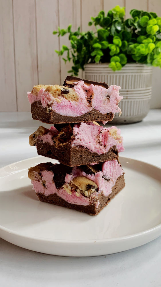 These protein bars don't need any introduction or an epic entrance... it's just epic and it's one recipe you need to try ASAP! Such a great combination of flavors and textures in this creamy and soft strawberry pudding, chocolate peanut butter cups, a chocolate base & cookie pie is just another level; low carb, gluten free and using better for you ingredients.